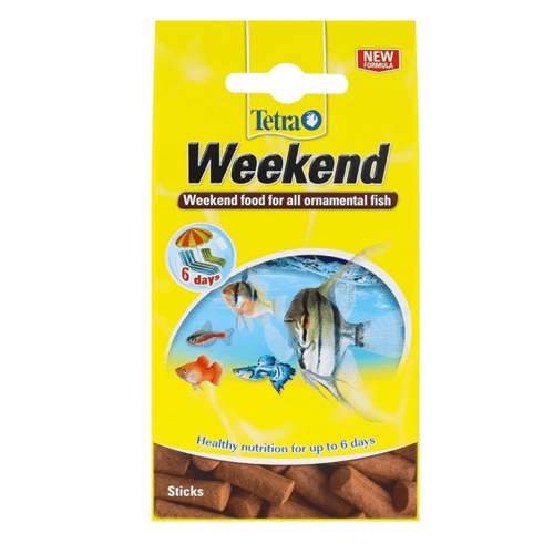 Tetra has made it easy for you to go away for the weekend and leave your fish unattended without any worry. With Tetramin Weekend food sticks, you can ensure that your Tropical Fish are well-fed, healthy, and happy while you are gone. These 100% edible food sticks provide a complete and balanced diet, without any plaster or indigestible binding agents.